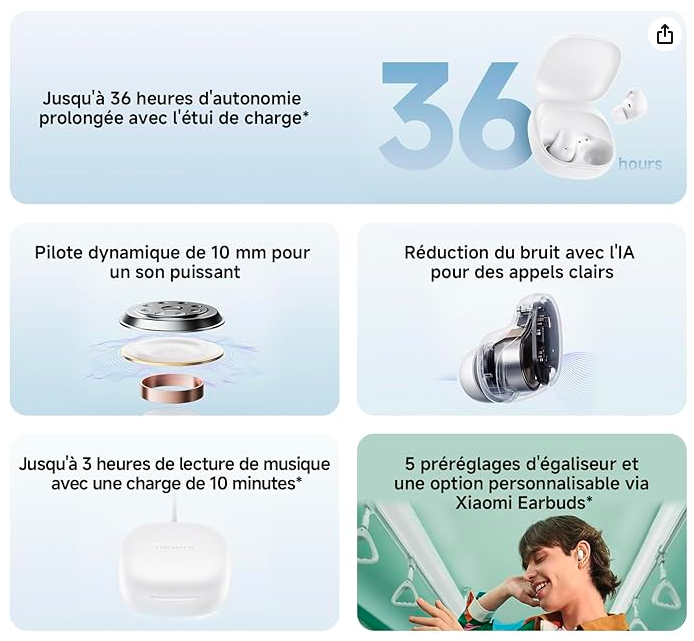 Découvrez les Redmi Buds SE, les nouveaux écouteurs sans-fil de Xiaomi conçus pour offrir une expérience audio exceptionnelle au quotidien. Grâce à leur technologie Bluetooth 5.3, une autonomie impressionnante allant jusqu’à 36 heures, et leur réduction de bruit intelligente basée sur l’IA, ces écouteurs sont parfaits pour les appels, la musique et le sport.